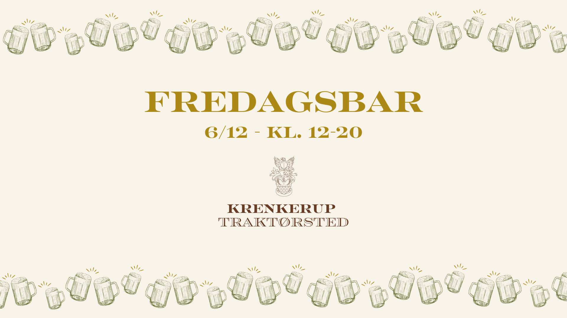 En perfekt anledning til at samlesFredagsbaren er en oplagt mulighed for at ønske hinanden en god jul i selskab med gode kollegaer eller venner. Der er fri entré, og hvis I ønsker at reservere et bord, kan I sende en mail til info@krenkerup. Krenkerup Traktørsted hjælper også gerne med mad og barsnacks, så I kan få en komplet oplevelse.