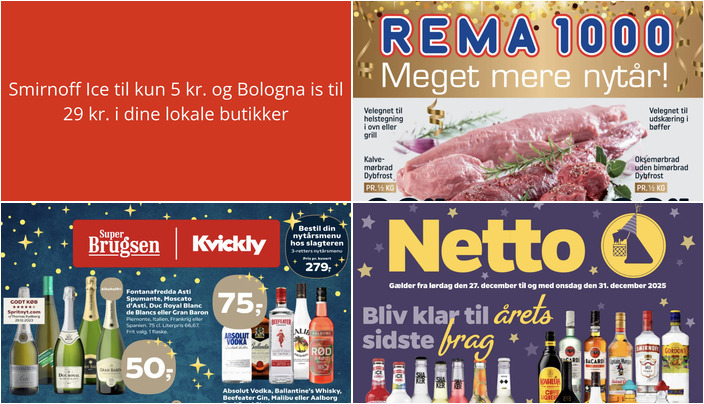 Netto tilbyder Smirnoff Ice, Shaker eller Mokai til kun 5 kr. for 27,5 cl. flasker, ekskl. pant. Dette tilbud gælder fra lørdag den 27. december til onsdag den 31. december, men husk, der er en grænse på 24 stk. pr. variant pr. kunde pr. dag.